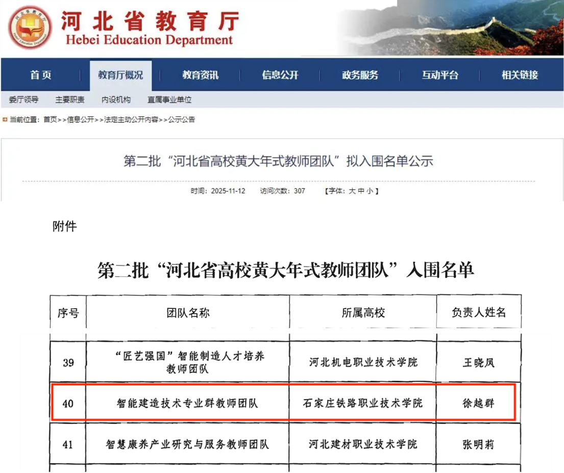 石铁院tyc122cc太阳成集团智能建造技术专业群教师团队入选第二批“河北省高校黄大年式教师团队”