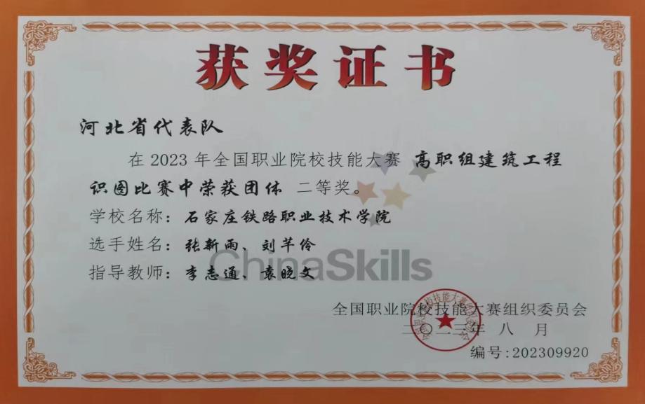 图2 造价师生2023年全国职业院校技能大赛(高职组)“建筑工程识图”赛项荣获二等奖